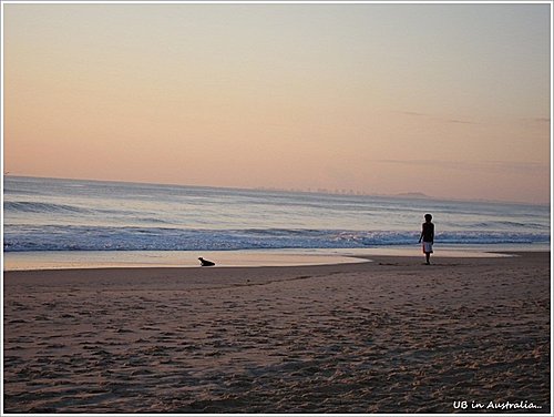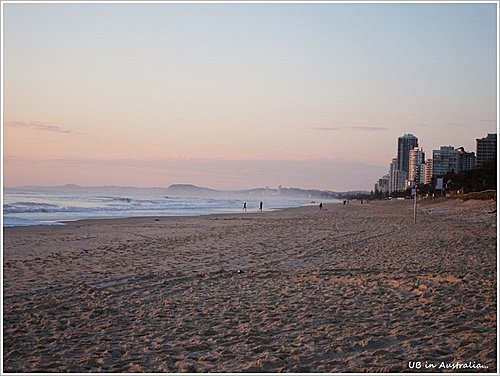 看著這日出映照的金黃色沙灘,還真是名副其實的"黃金海岸"呢!!