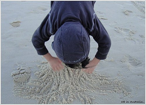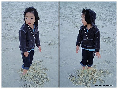 小草莓興奮的用沙把自己腳埋起來.....